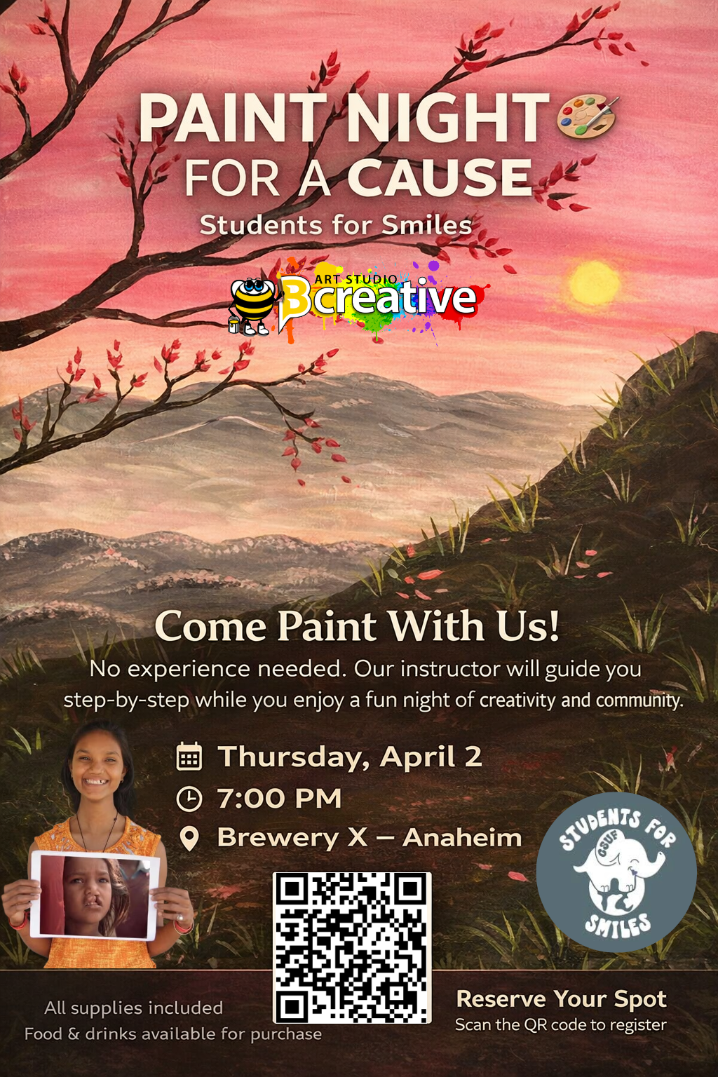 Students for Smiles Paint Night Thursday, April 2, 2026 7:00 PM 10:00 PM 19:00 22:00 Brewery X 3191 East La Palma Avenue Anaheim, CA, 92806 United States (map) Google Calendar ICS Sign Up